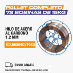 1 pallet (72 bobinas de 15 Kg) hilo de acero al carbono ER70S-6 SG2 Bobina Metálica 1,2 mm 1,287.63 IVA INCLUIDO