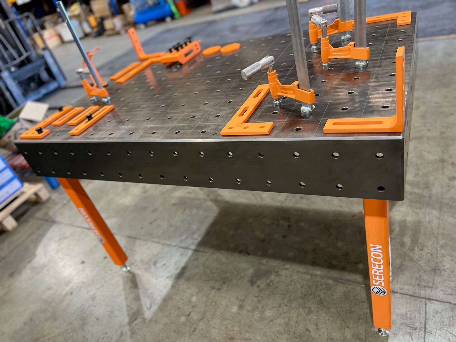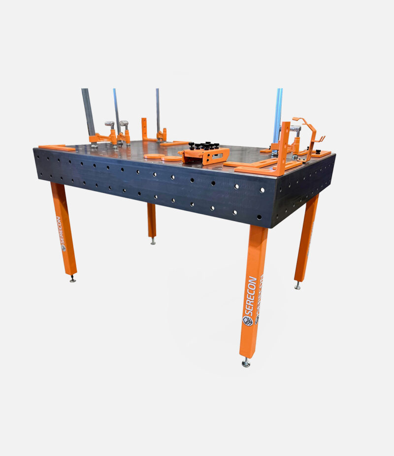 Gracias a su diseño modular, la mesa permite una configuración flexible del sistema de fijación universal, facilitando el posicionamiento y sujeción de piezas de diferentes geometrías. Combinada con el kit de accesorios, se convierte en una estación de trabajo completa que optimiza la productividad, la precisión y la seguridad en procesos de soldadura, calderería y estructuras metálicas.