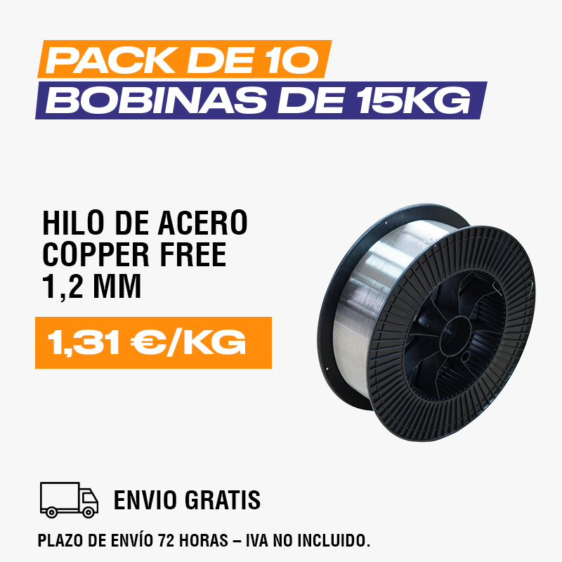 Pack 10 bobinas 15 Kg. hilo de soldar copper free ER70S-6 SG2 Ø1,2 mm 237.77 IVA INCLUIDO