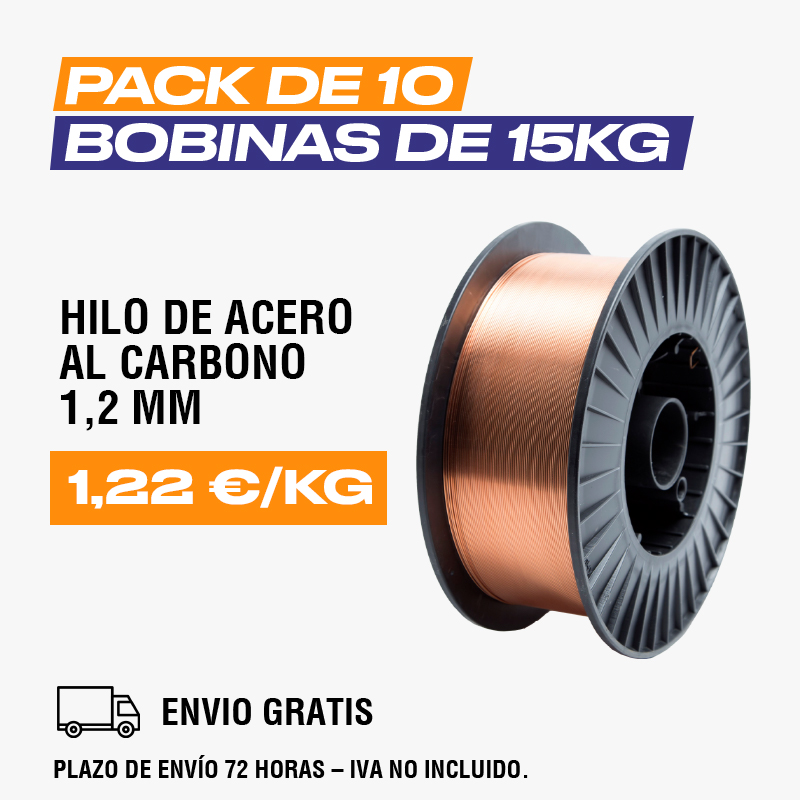 Bobinado capa a capa para facilitar el trabajo de soldeo. Bobina plástica de 15kg. Diámetro D300