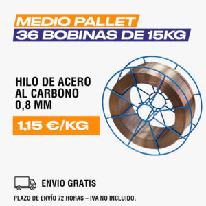 1/2 pallet (36 bobinas de 15 Kg) hilo de acero al carbono ER70S-6 SG2 Bobina Metálica 0,8 mm